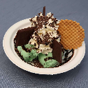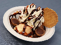 Eis aus eigener Herstellung, Sahne, Hausgemachte Schokosoße, Schokoraspeln